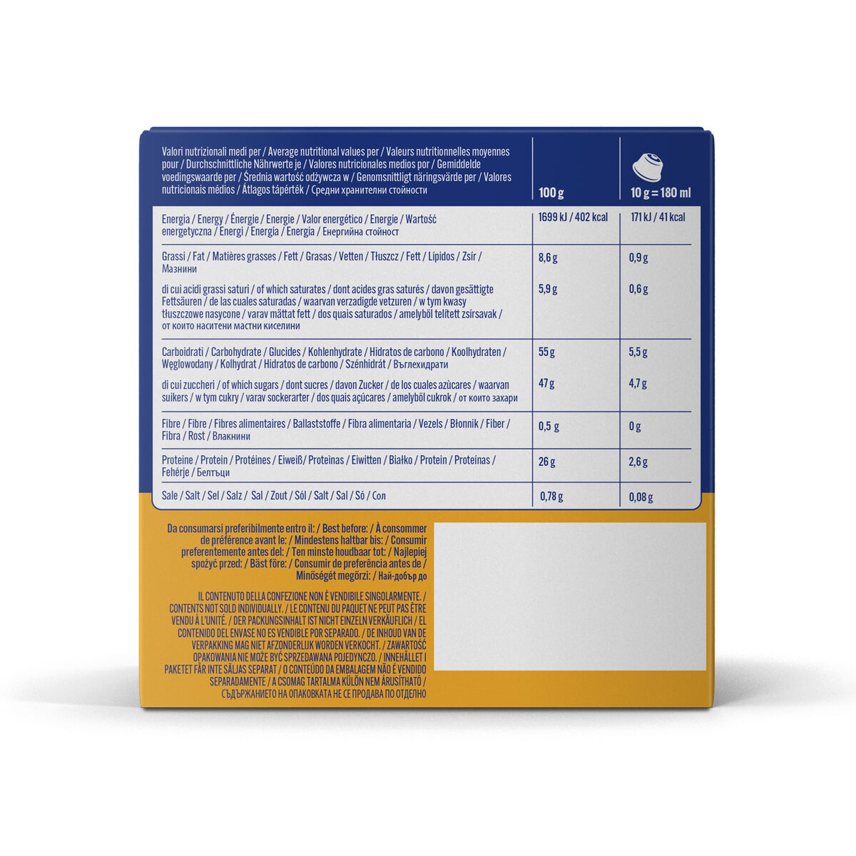 PRÉPARATION SOLUBLE POUR BOISSON AVEC LAIT EN POUDRE ET CAFÉ INSTANTANÉ: Lait écrémé en poudre 48 %, lait en poudre 30 %, café instantané 13 %, sucre, anti-agglomérant : E551.